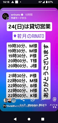 本日、22(水)は貸切り営業的な感じでやらしてもらいます! 申し訳ありません!また明日より宜しくお願い致します!